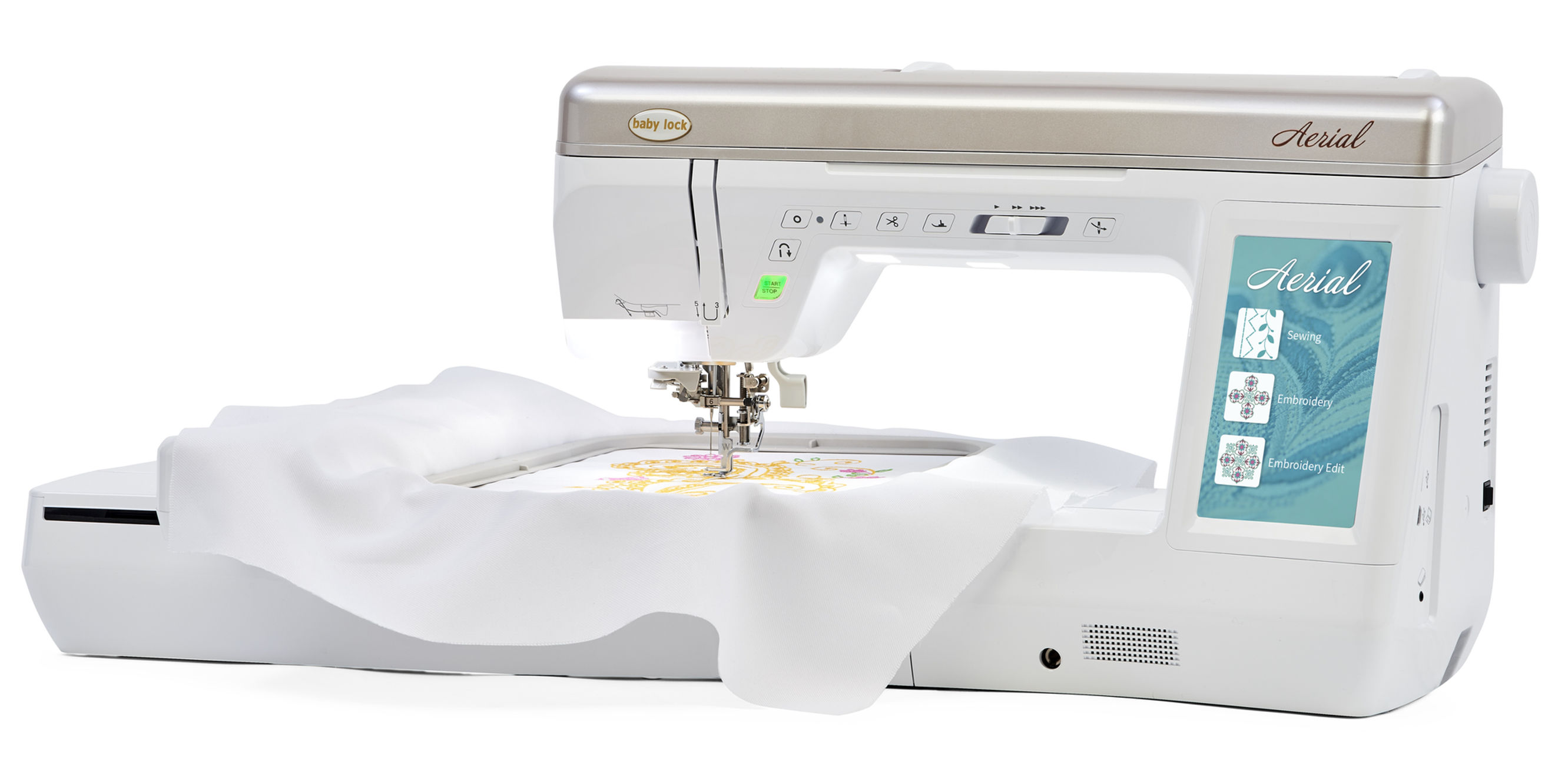 The Baby Lock Aerial sewing and embroidery machine features include: