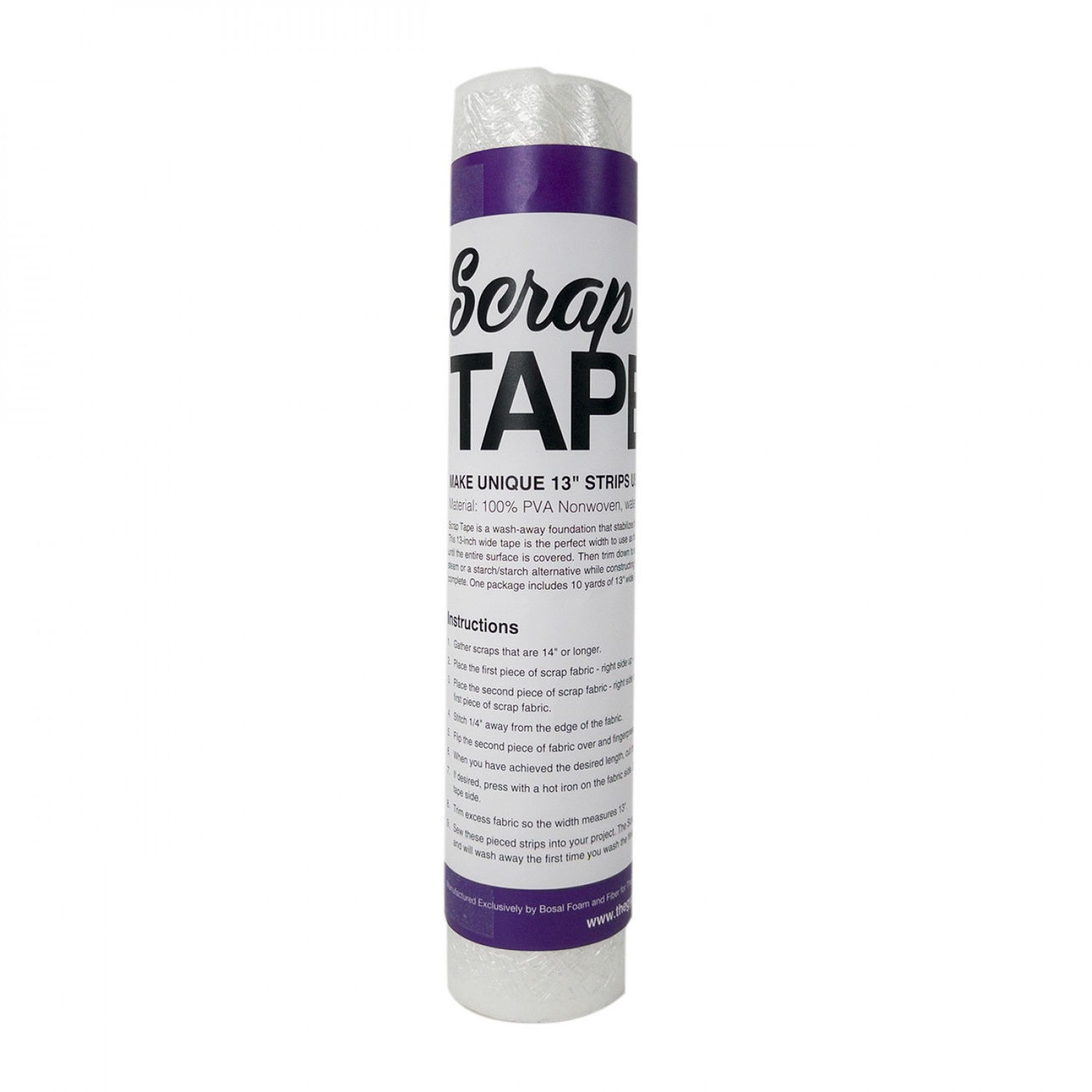 Scrap Tape is a wash away foundation that stabilizes the grain line of fabric until it is sewn into the finished project. This 13-inch wide tape is the perfect width to use as the foundation of crazy quilt blocks. Stitch and flip the fabrics until the entire surface is covered. Then trim down to size. Since Scrap Tape washes away with water, do not use steam or a starch/starch alternative while constructing your blocks. Wash the stabilizer away AFTER the project is complete. One package includes 10 yards of 13in wide Scrap Tape, enough to make (26) 13in blocks.