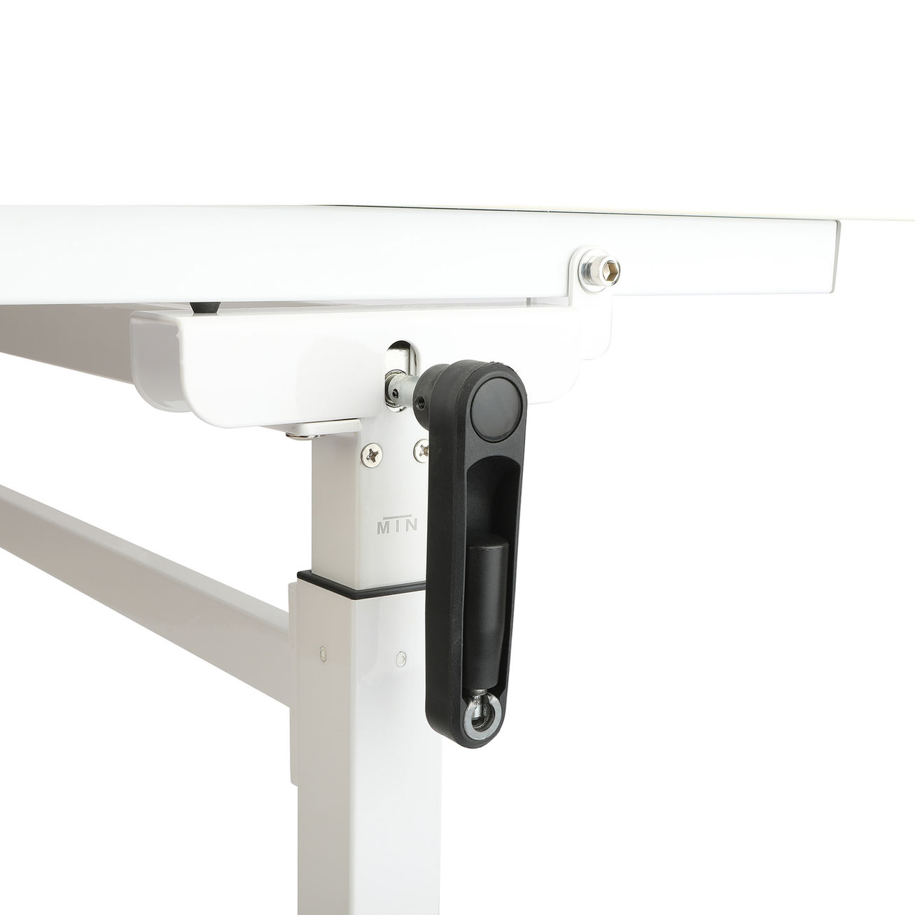 - Transition from sitting to standing with the turn of a crank, moving table from 28-1/2” to 38” tall