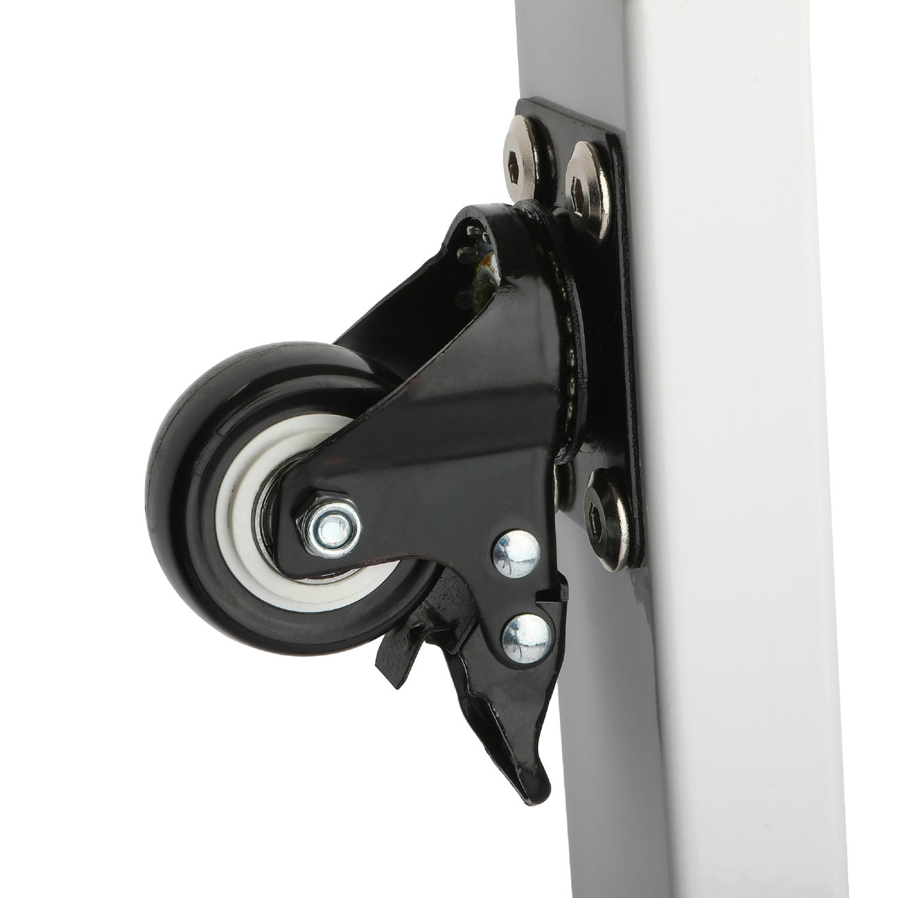 - Sturdy design with locking industrial casters for stability and easy mobility